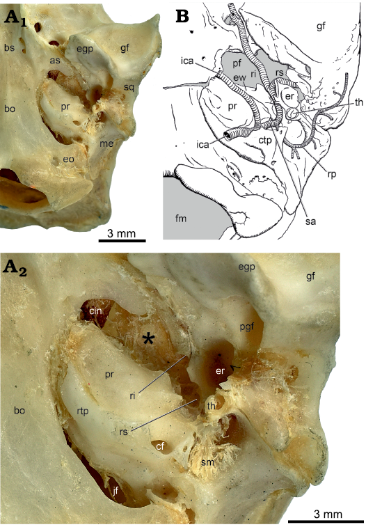 Ekdale, E.G. 2013. Comparative anatomy of the bony labyrinth (inner ear) of placental mammals. PLoS ONE 8 (6): e66624. Crossref